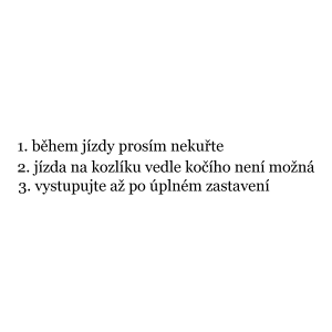 počet osob: 5 - 6 • doba jízdy: asi 45 minut • cena: 2000,-Kč (85,- €) • důležité informace -