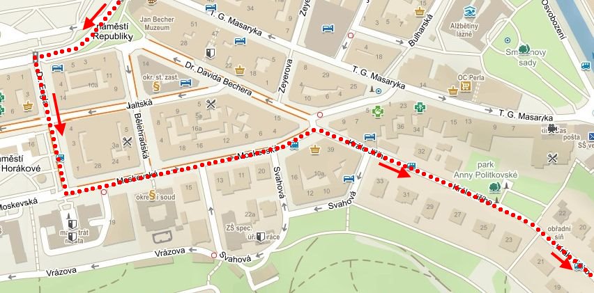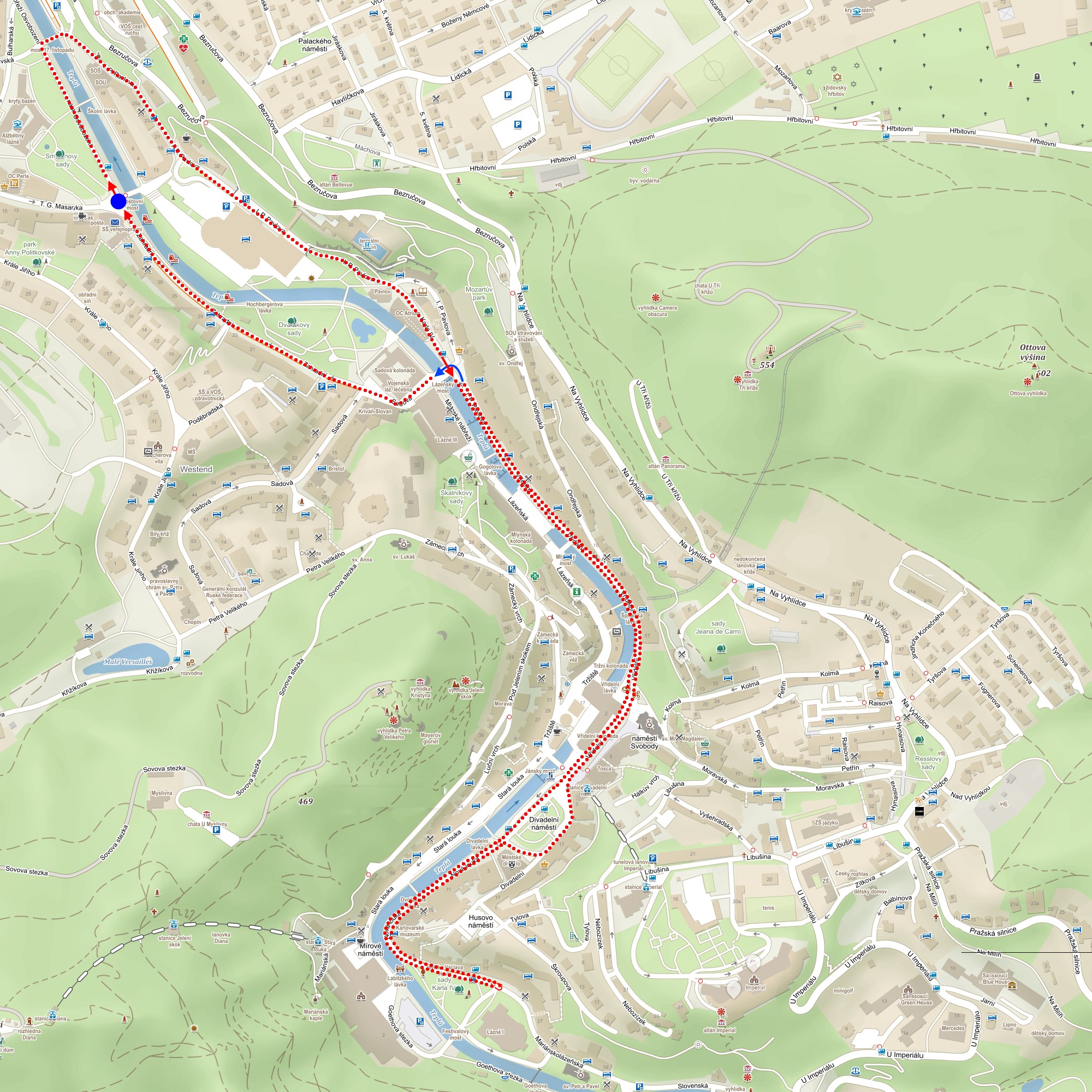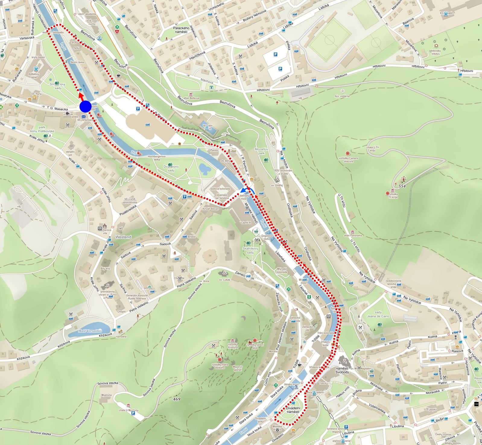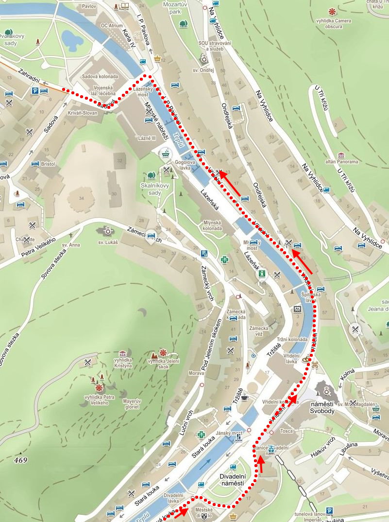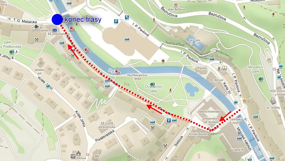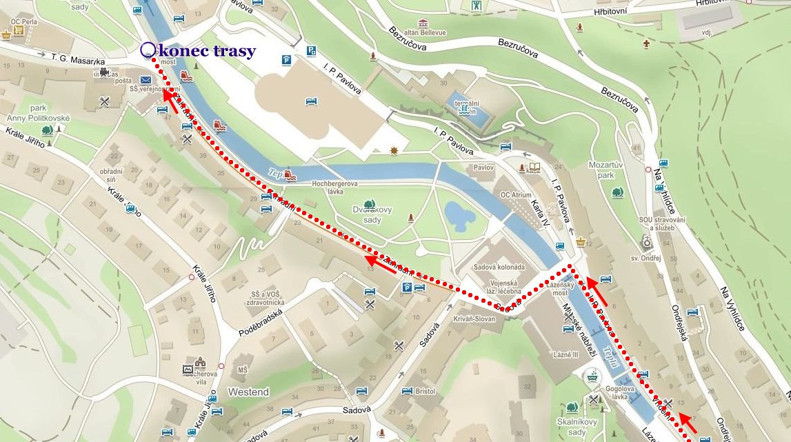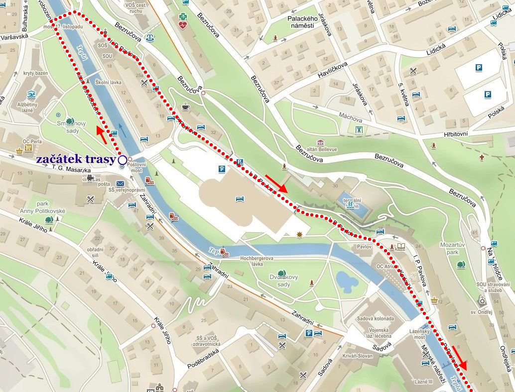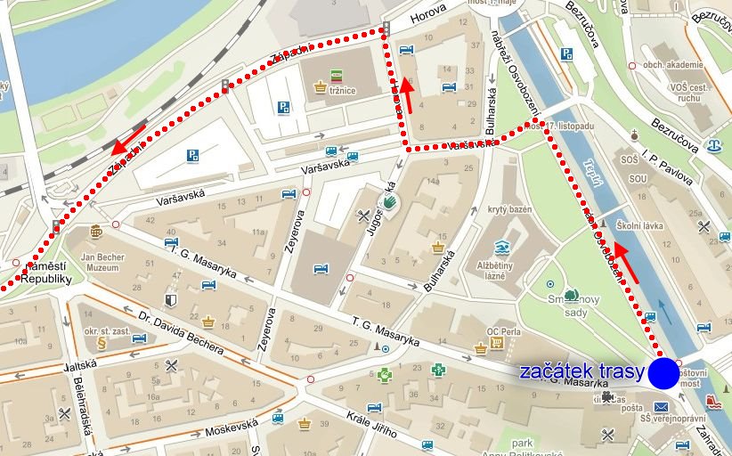 Začátek a konec vámi zvolené trasy by měl být na nábřeží Osvobození u Poštovního mostu nebo na Divadelním náměstí.